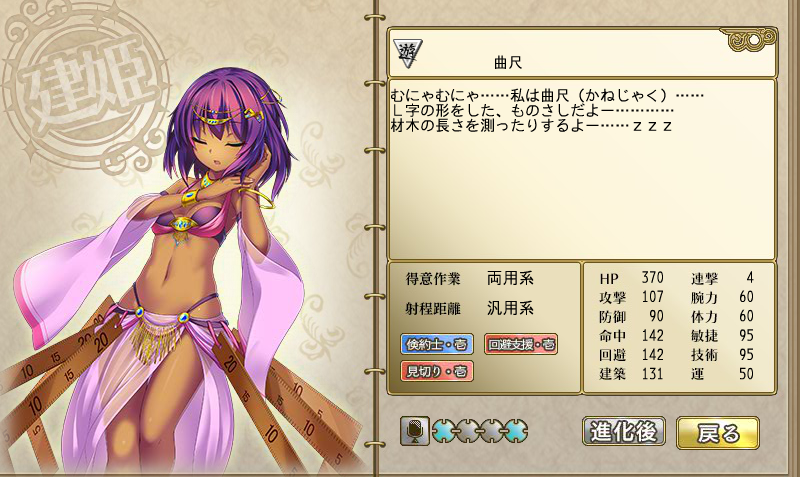 ステータスの一つに建築力があり、建築や増築の効果に影響します