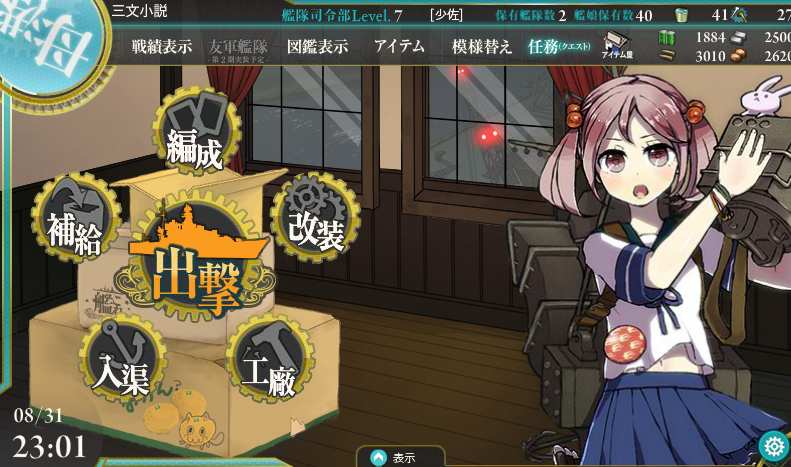 何にも記事がないのは寂しいので艦これのスクショでも上げておきます