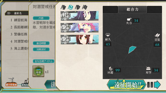 なので50分の対潜も30分の長距離遠征も効率的には変わらず