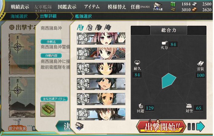 さ、適当に出撃して、秘書艦漣さんの雄姿でも画像に納めてみましょう