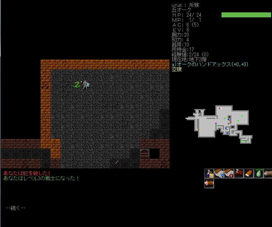 蛇を殺して3レベルに