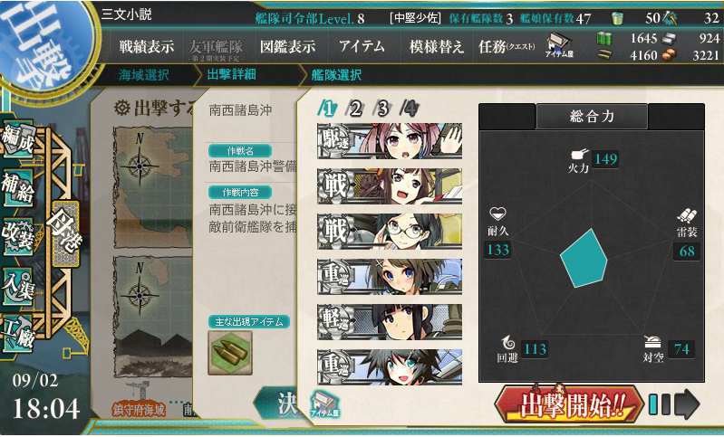 今日建造した3人で艦隊を作ってデビュー戦と行きましょう